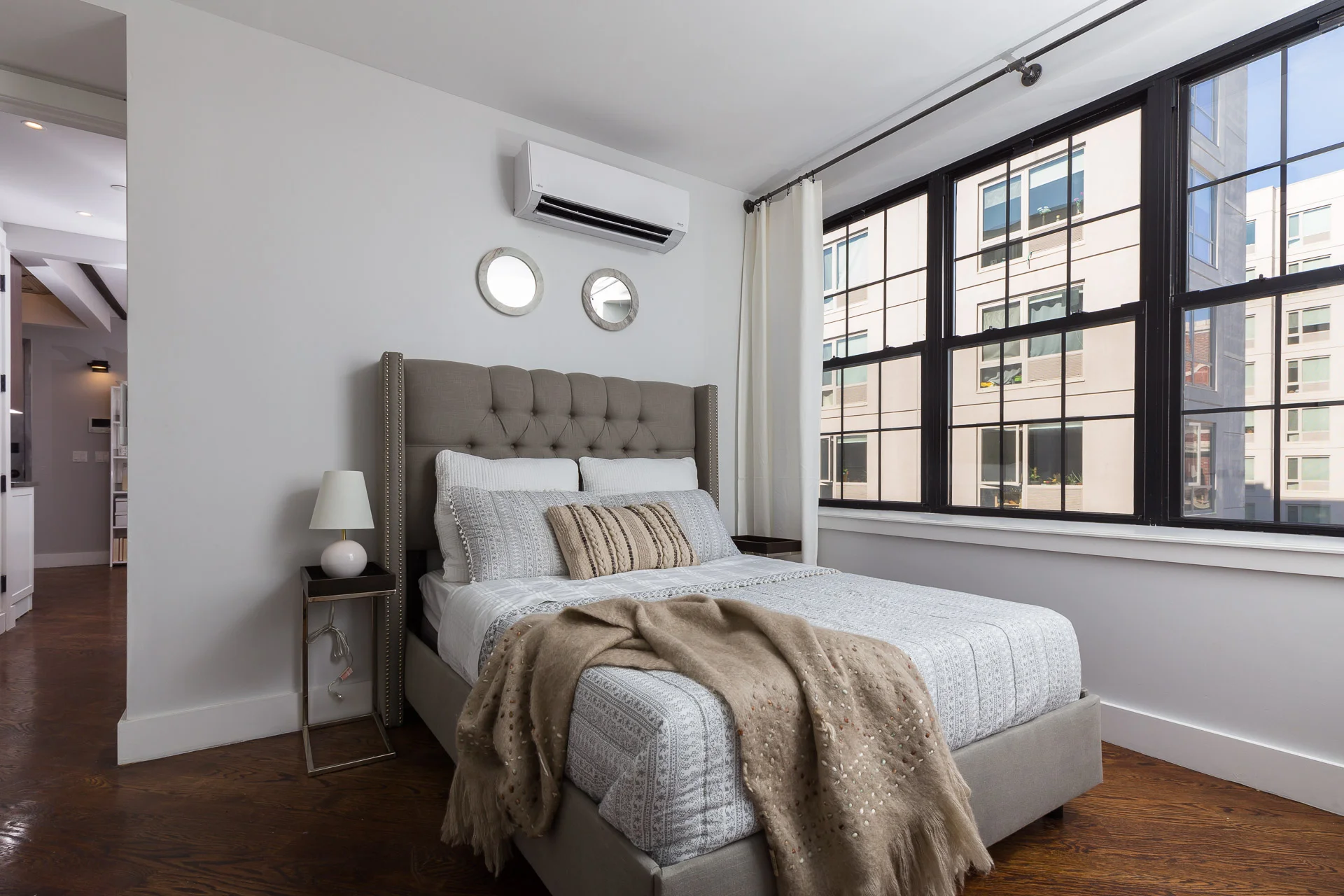 The building’s high-end appeal lies in the meticulous attention to detail and upscale touches, which include exposed beam ceilings, post-modern fixtures, and warm, textured hardwood that runs throughout each unit.